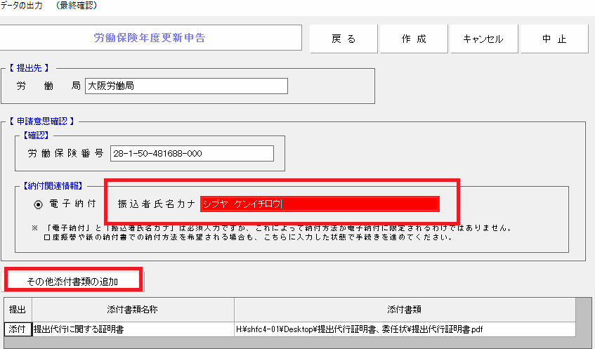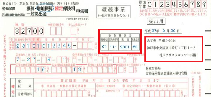 ※労働局から発行された申告書の記載通りに入力してください。