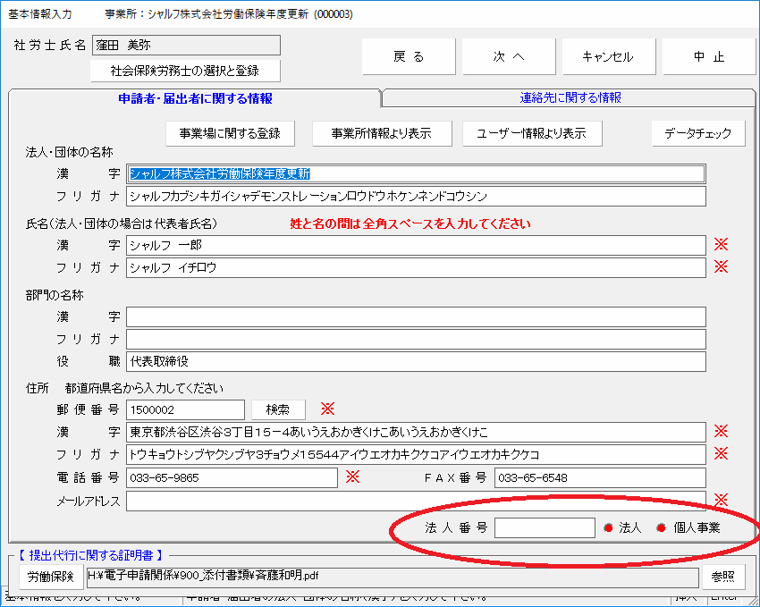 基本情報が表記されるので、法人番号を入力してください。