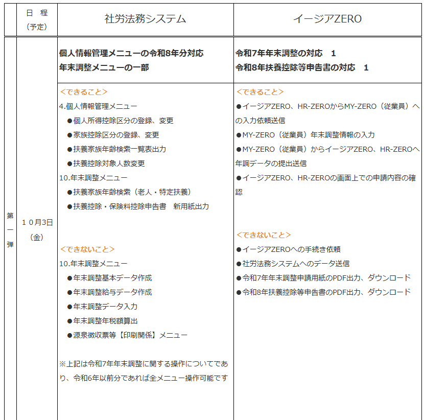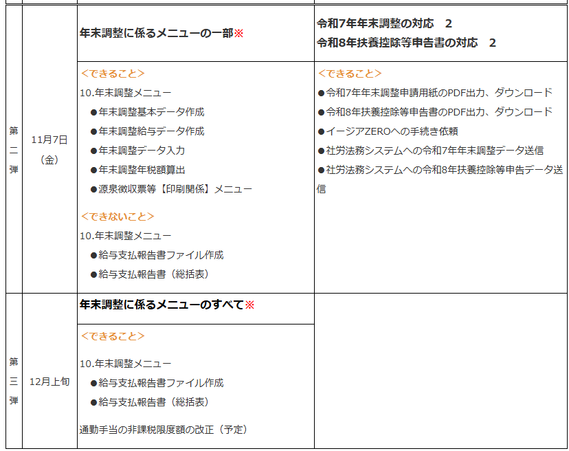 【年末調整関連アップデートスケジュール】