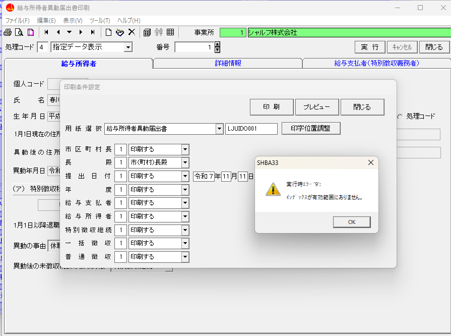 プレービュー画面を表示しようとするとエラー「実行時エラー9インデックスが有効範囲にありません。」が表示される不具合に対応しました。
