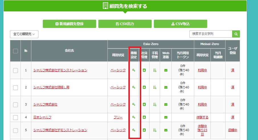 「顧問先管理」「事業所ごとの権限設定」画面の権限設定をご確認ください。