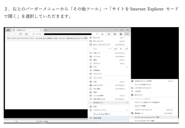 また、Robo-Zeroをご利用の場合には、別途、デスクトップ上ご用意した閲覧のためのツールアイコンから、edgeブラウザを開いてIEモードにて閲覧いただく方法となります。