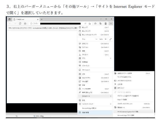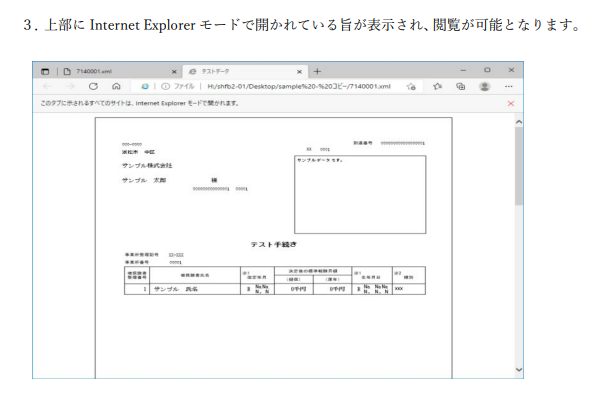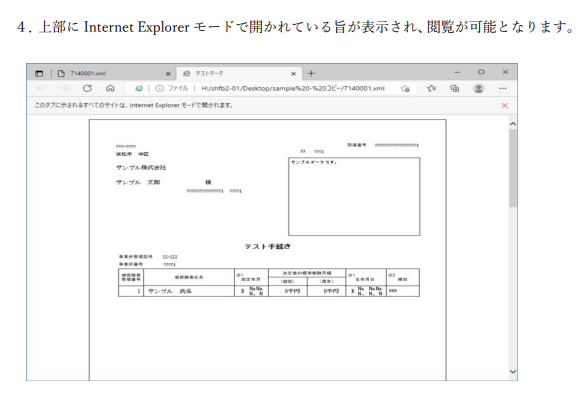 ASPサーバー上では、edgeブラウザでの閲覧となりますが、e-GOVの公文書XML形式は、edgeブラウザでは、そもそも直接開けないため、IEモードに変換して閲覧していただくことになります。