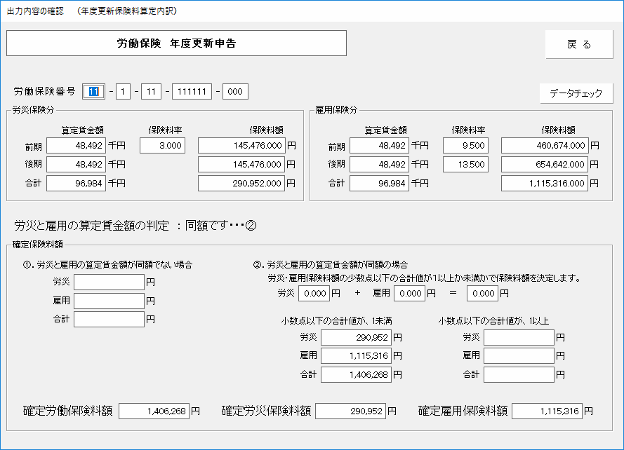 ※確定保険料率欄も保険料算出メニューをみて必要な情報は反映されますが、