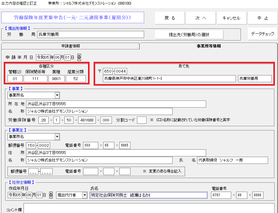 5)出力内容の確認と訂正画面が表示されます。
