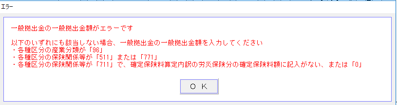 ※二元適用 雇用のみの労働保険の場合、下のエラーメッセージが表示されることがあります。