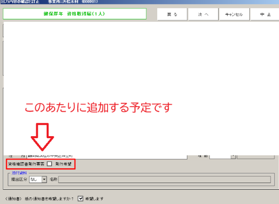 アップデートまでは、出力内容の確認と訂正画面で、「資格確認書が必要な場合は、備考欄にその旨を記載してください」と